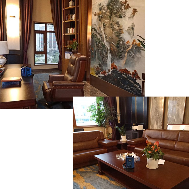 工業區高層領導辦公室裝修除甲醛:本套案例是工業園區一家機械工廠董事長+總經理+秘書的辦公室,層高4米左右,裝修豪華復雜,面積在480平左右。當天治理24小時入住